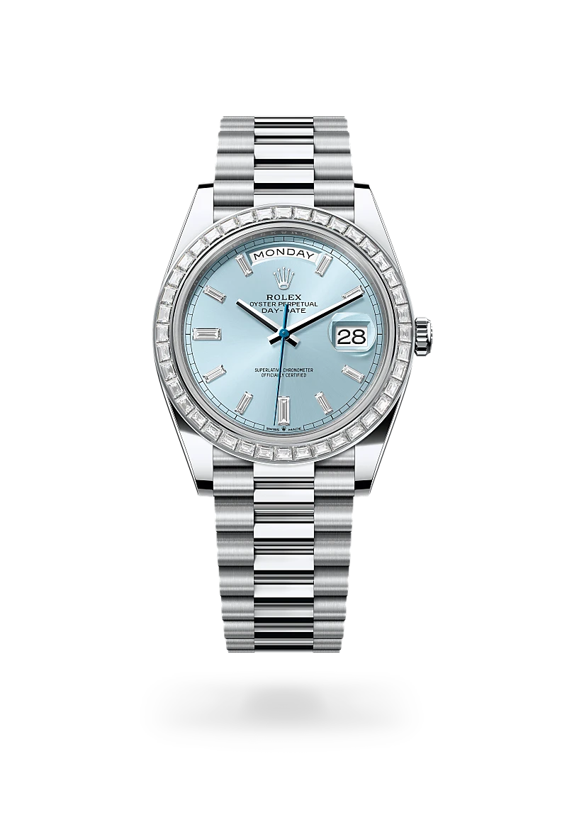 The ice-blue dial is the discreet and exclusive signature of a Rolex platinum watch. Rolex uses platinum, the noblest of metals, for the finest of watches. This exclusive dial colour can be found only on the Day-Date, the Cosmograph Daytona and the Perpetual 1908.