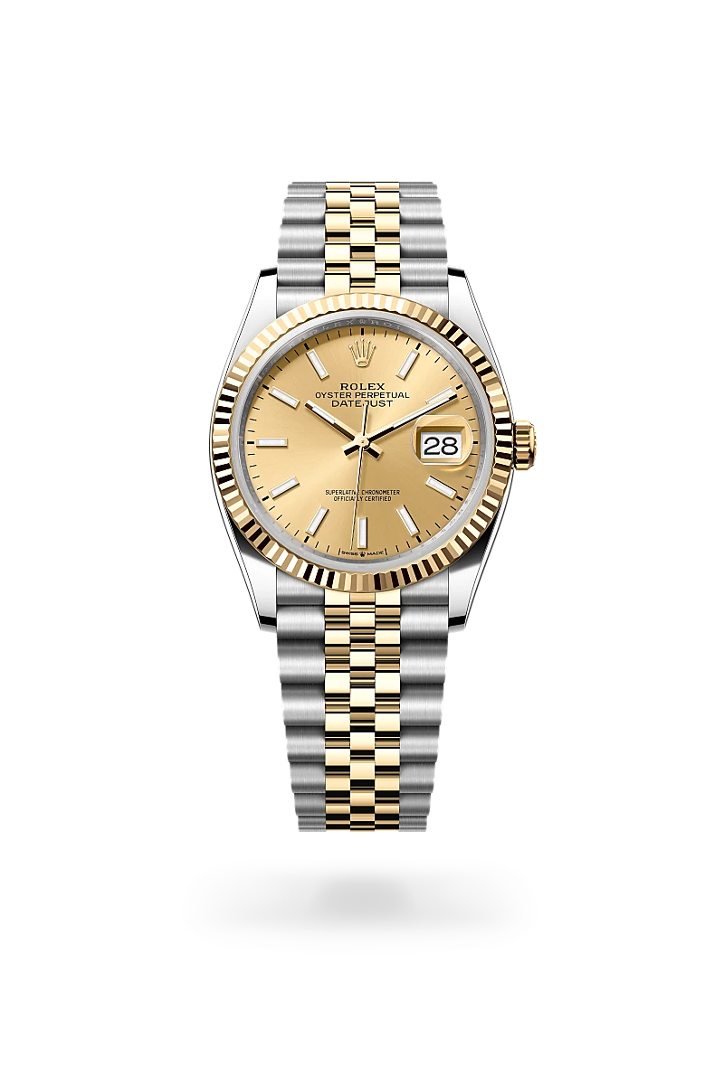 Bezel berjejalur Rolex ialah lambang kelainan. Pada asalnya, jejalur bezel Oyster mempunyai tujuan fungsian: digunakan untuk memasang bezel pada penutup bagi memastikan jam tangan itu kalis air. Oleh itu, jejalur ini sama dengan jejalur penutup belakang yang juga diskrukan pada penutup supaya kalis air dengan menggunakan alatan khusus Rolex. Lama-kelamaan, jejalur itu menjadi elemen estetik, satu ciri asli yang menjadi tanda pengenalan Rolex. Kini, bezel berjejalur ialah satu tanda kelainan, dalam emas pada Datejust 36 ini.
